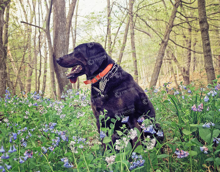 Aggie sitting in the Bluebells Vosburg, Pa