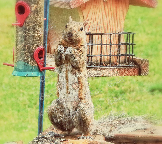 Squirrel stealing bird seed