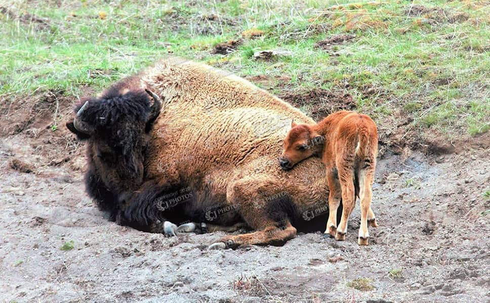 Buffalo calf and mommy Yellowstone